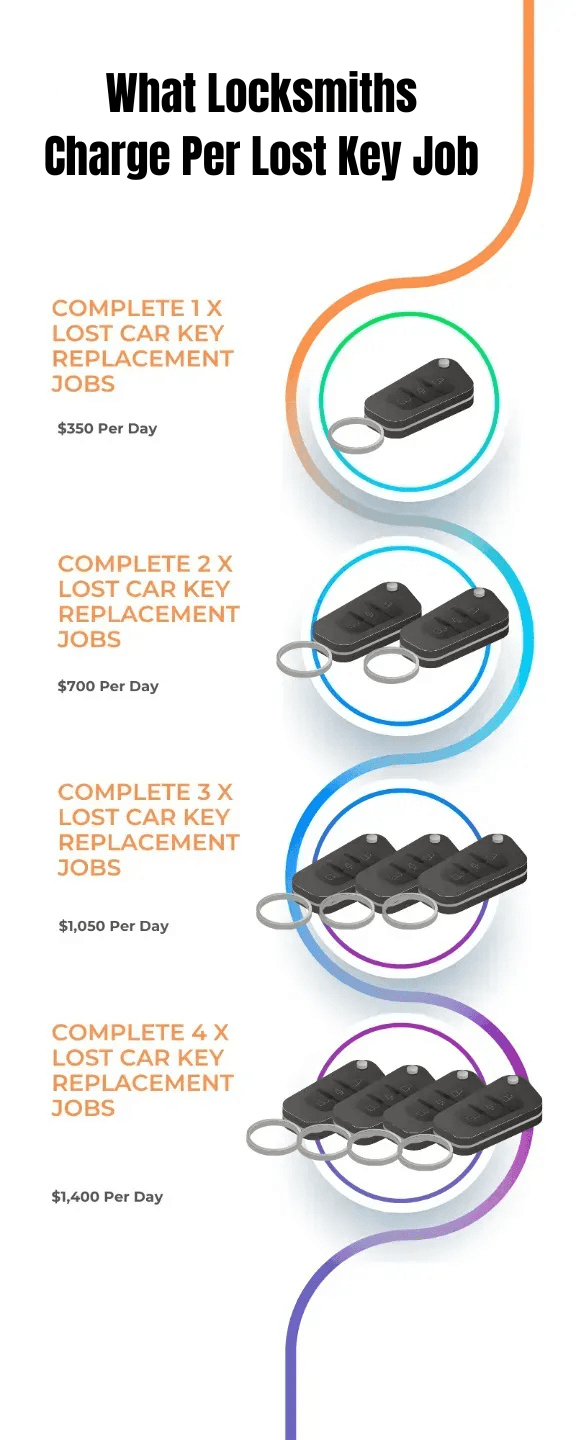 You’ll get my proven blueprint for completing at least 3 lost car key replacement jobs per day, with the potential to generate up to $1,050 per day (minus running costs and stock).